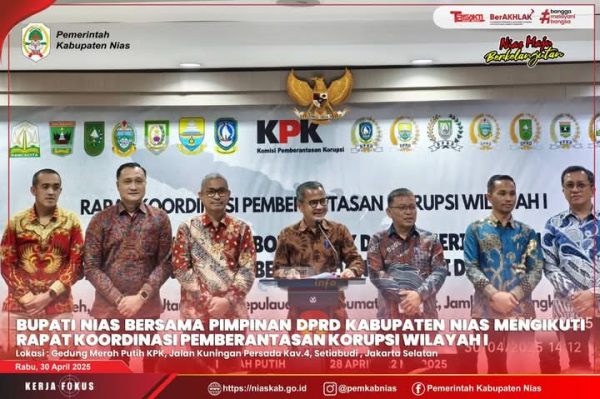 Nias – Media Fokuslensa.com – Direktorat Koordinasi dan Supervisi Wilayah I KPK gelar Rapat Koordinasi Penguatan Sinergi Kolaborasi antara KPK dan Pemerintah Daerah dalam Rangka Pemberantasan Korupsi di Aula Bhineka Tunggal Ika, Lt. 16, Gedung Merah Putih, KPK RI-Jakarta Selatan. Rabu (30/04/25)