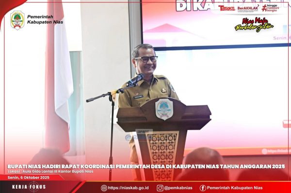 Nias – Media Fokuslensa.com – Senin, 06 Oktober 2025. Pemerintah Kabupaten Nias menggelar Rapat Koordinasi (Rakor) Pemerintahan Desa Tahun Anggaran 2025 sebagai upaya mengoptimalkan pelaksanaan, evaluasi, dan pelaporan penyelenggaraan pemerintahan desa.