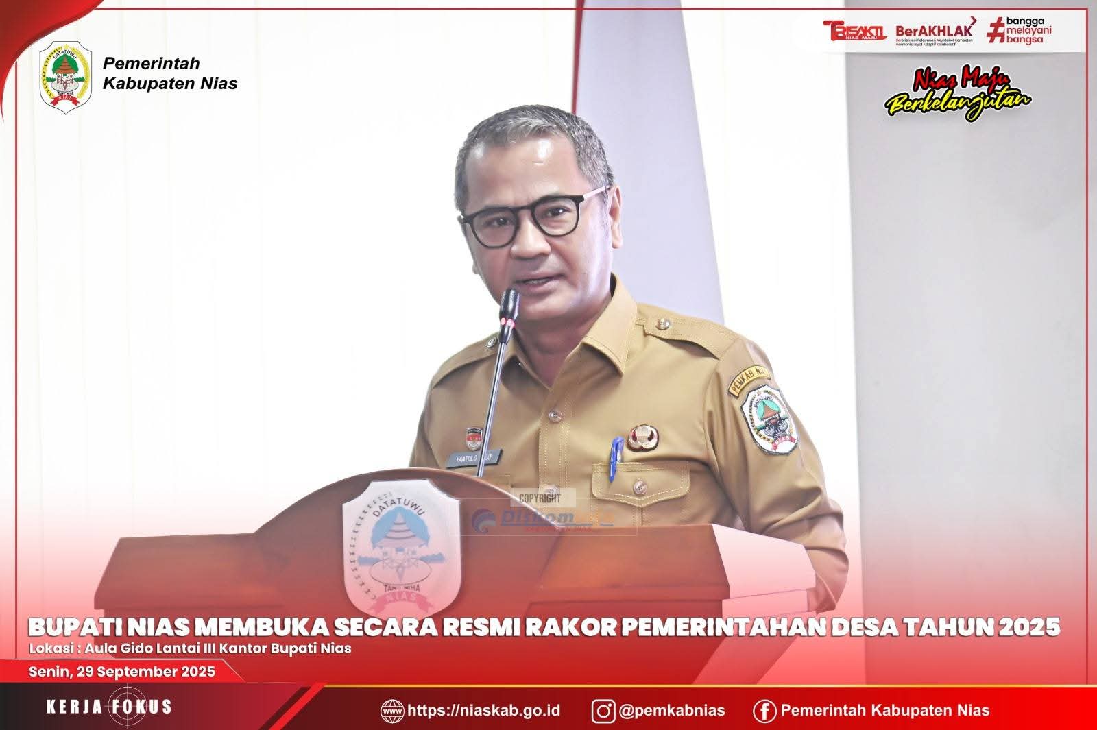 Nias – Media Fokuslensa.com – Pemerintah Kabupaten Nias menggelar Rapat Koordinasi (Rakor) Pemerintahan Desa Tahun Anggaran 2025 sebagai upaya mengoptimalkan pelaksanaan, evaluasi, serta pelaporan penyelenggaraan pemerintahan desa. Senin (29/9/25)