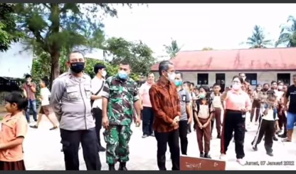 Nias -Fokuslensa.com – Bupati Nias Yaatulo Gulo,SE,SH,M.Si, Meninjau Kesiapan Pelaksanaan Vaksinasi Merdeka Anak di SD Negeri 071078 Hiliweto Gido, Kecamatan Gido, Kabupaten Nias, Prov. Sumut. Kedatangan Bupati disambut para Guru-Guru Tenaga Pengajar, pada hari Jumat (07/01/2022).