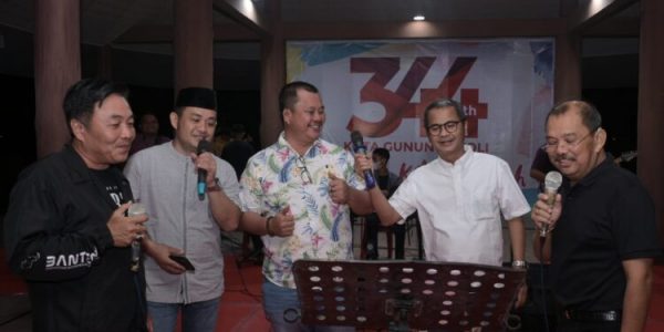Gunungsitoli – fokuslensa.com – Bupati Nias Ya’atulo Gulo, Nyanyi Bersama bersama Walikota, Wakil Walikota Gunungsitoli dan Ketua DPRD, Wakil DPRD Kota Gunungsitoli, saat menghadiri acara Gunungsitoli berdendang. Gunungsitoli Ke-344 Tahun 2022 yang digelar di Taman Ya’ahowu Kota Gunungsitoli pada Senin (04/04/2022)