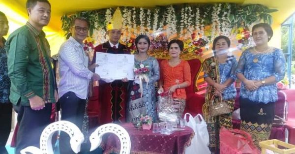 Penyerahan akta nikah ini merupakan penyerahan perdana kepada pasangan yang melangsungkan Pernikahan di Kabupaten Nias dan diserahkan langsung oleh Bupati Nias Ya’atulo Gulo