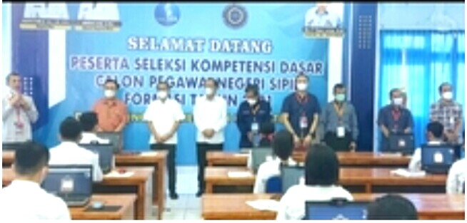 Peninjauan hari pertama pelaksanaan SKD tersebut untuk memastikan kesiapan dan sekaligus memberikan semangat kepada para peserta untuk mengikuti ujian.