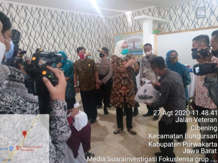 Purwakarta,- Fokuslensa.com – masih Dalam masa pendemi Covid 19, Bupati Purwakarta serentak melaju ke lima desa untuk meyerahkan bantuan sosial dan, yang pertama kali di kunjungi didatangi yaitu desa ciwangi selanjutnya ke desa cibening.pembagian tersebut secara simbolis di berikan oleh Bupati purwakarta. Anne Ratna mustika yang sering di sapa akrab Ambu.