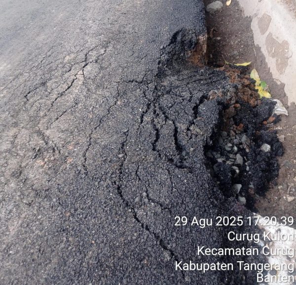 Tangerang – Media Fokuslensa.com – Sangat miris sekali proyek peningkatan Jalan Hotmix di Lingkungan RT/05 RW/09 Desa Cukanggalih, Kecamatan Curug, Kabupaten Tangerang yang dilaksanakan oleh CV Wildan Sentosa selang beberapa hari kemudian setelah dikerjakan sudah mengalami kerusakan yang sangat signifikan. Minggu, 31/08/2025.