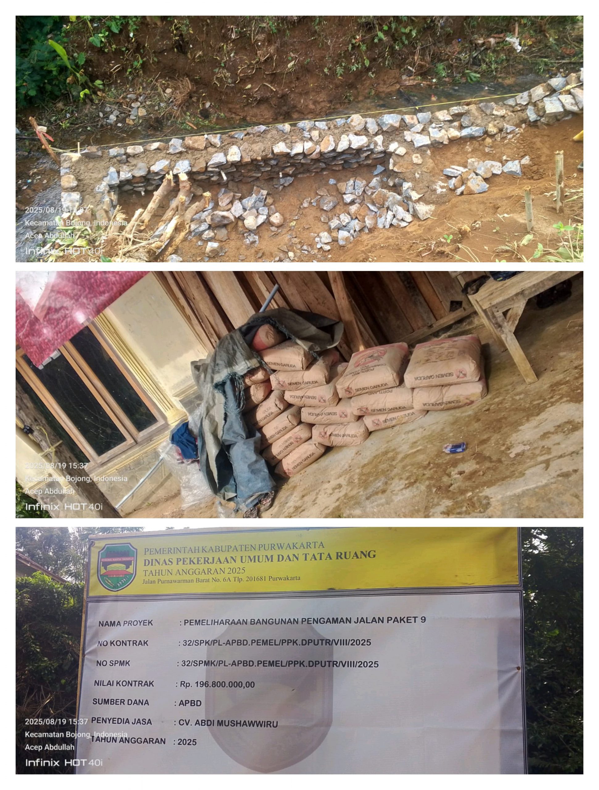 Purwakarta – Media Fokuslensa.com – Proyek pembangunan pemeliharaan bangunan pengaman jalan Paket 9 di Desa Cihanjawar, Kecamatan Bojong, Kabupaten Purwakarta, kini menuai sorotan tajam. Proyek senilai Rp198.800.000 yang bersumber dari Anggaran Pendapatan Belanja Daerah (APBD) Provinsi Jawa Barat Tahun Anggaran 2025 itu dikerjakan oleh CV. Abdi Mushawwiru berdasarkan kontrak nomor 32/SPK/PL-APBD.PEME/PPK.V11/2025 dan SPMK nomor 32/SPMK/PL-APBD.PEMEL/PPK.DPUTPR/V11/2025.
