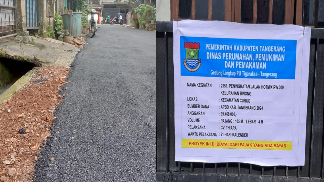 Tangerang – Media Fokuslensa.com – Peningkatan jalan hotmix di RW 09 Kelurahan Binong, Kecamatan Curug, Kabupaten Tangerang yang dilaksanakan oleh CV. Thiara diduga jadi ajang korupsi. Pasalnya, dalam pelaksanaannya dilakukan pada pukul 00:30 dini hari. Rabu, 04/12/2024.