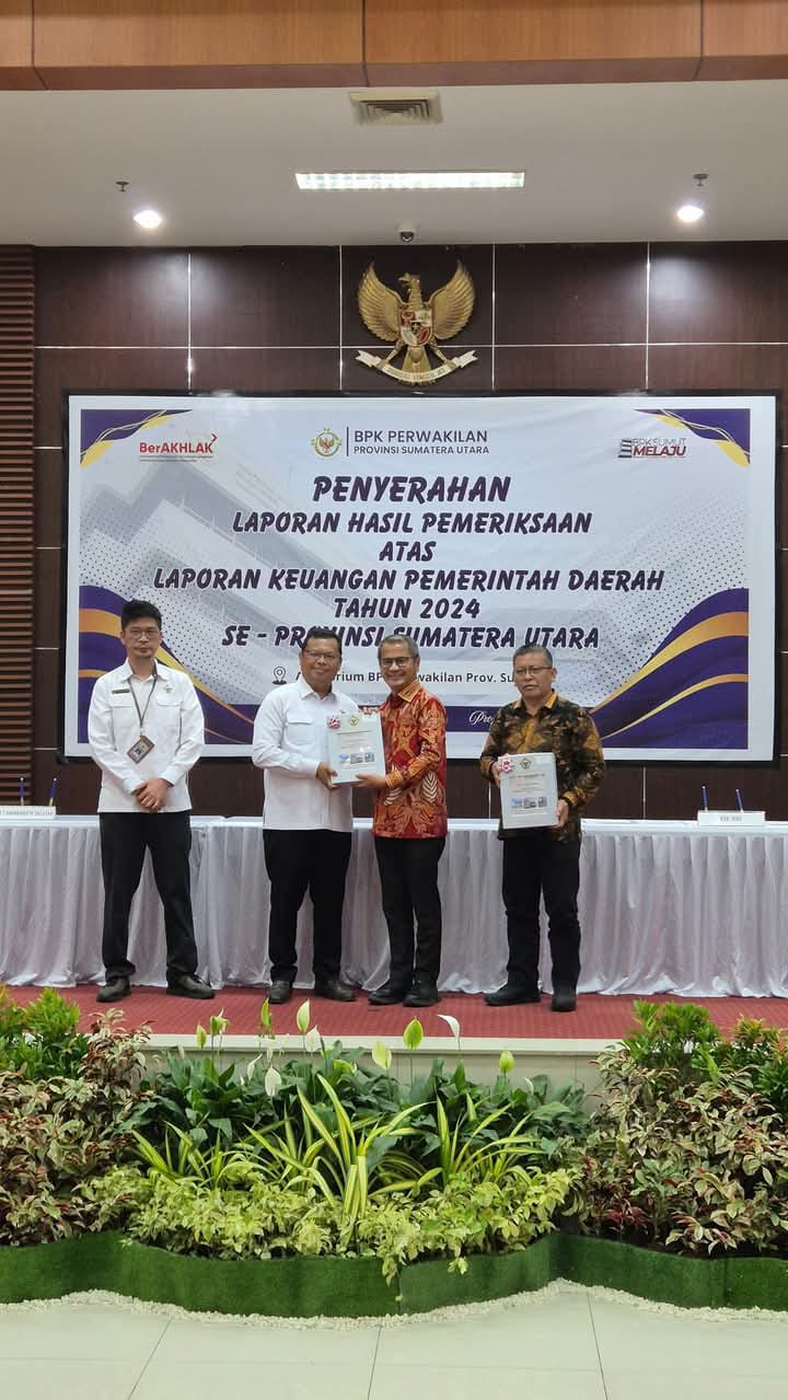 Nias – Media Fokuslensa.com – Kepala Perwakilan BPK RI Provinsi Sumatera Utara Paula Henry Simatupang, S.E., M.Si., Ak., CA, CFrA, CPA (Aust), CSFA, ACPA, GRCP, GRCA, ERMAP sampaikan Laporan Hasil Pemeriksaan (LHP) BPK atas Laporan Keuangan Pemerintah Daerah (LKPD) Kabupaten Nias Tahun Anggaran 2024, di Gedung BPK Perwakilan Provinsi Sumatera Utara, Jalan Imam Bonjol No. 22 Medan. Senin (26/5/25)