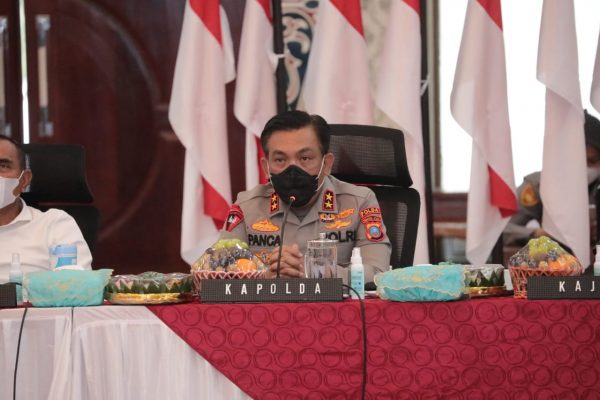 Hal tersebut disampaikan Kapolda Sumut saat Rapat Koordinasi Lintas Sektoral bersama Forkopimda terkait penanganan Covid-19 yang digelar di Aula Tribrata Mapolda Sumut, Senin (14/02/2022)