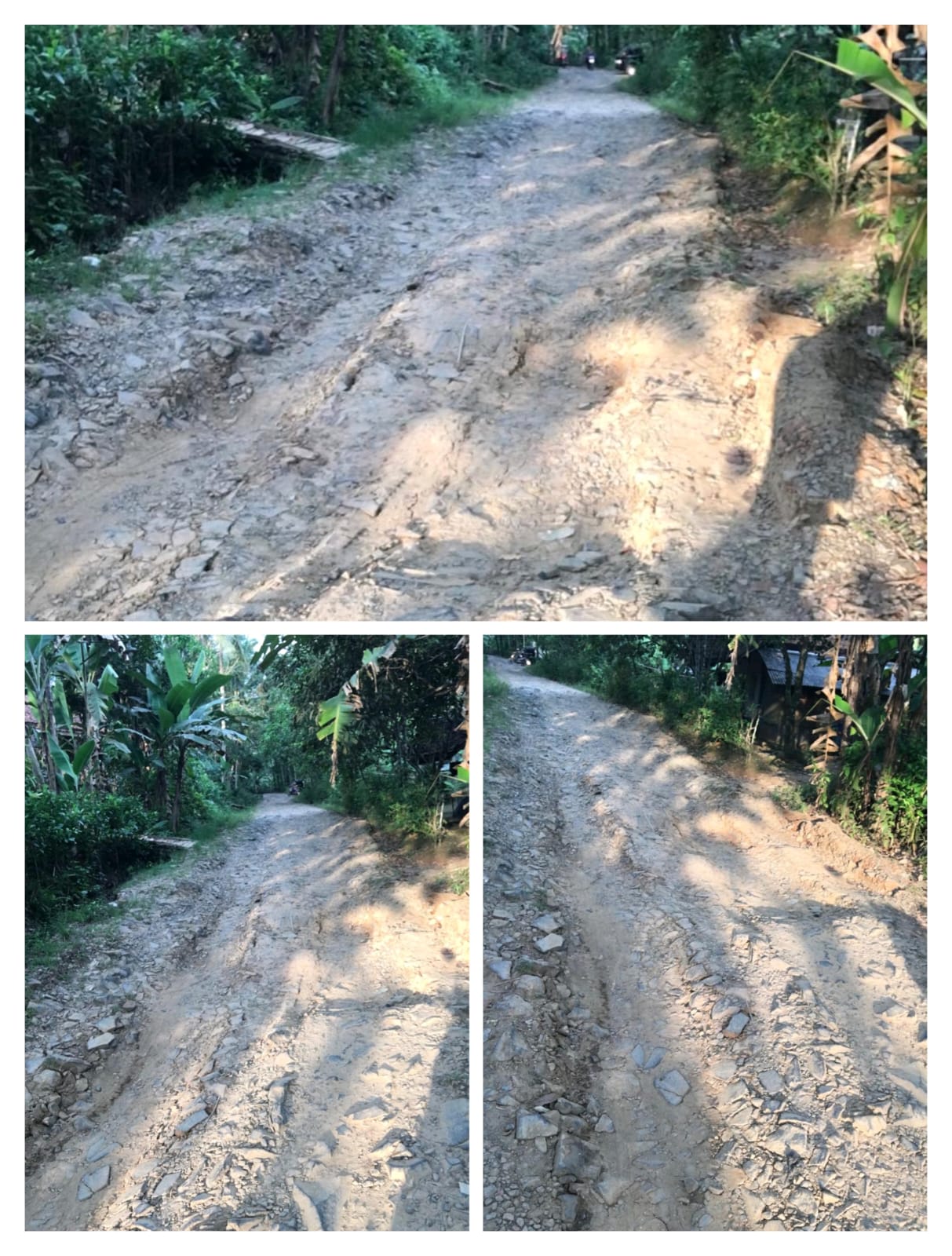 Kerusakan jalan ini bukan terjadi kemarin sore. Sudah bertahun-tahun bahkan berpuluh-puluh tahun lamanya warga harus bertahan dalam kondisi yang sama, tanpa kejelasan kapan perbaikan akan dilakukan.