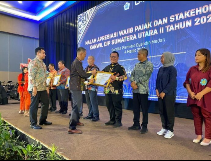 Dalam hal ini Wali Kota Gunungsitoli menerima Penghargaan dari DJP Sumatera Utara II Tahun 2023 sebagai Pemerintah Daerah dengan Persentase Tertinggi Pengiriman Data Instansi Pemerintah, Lembaga Asosiasi dan Pihak Lain (ILAP) Ke KPP Pratama Tahun Pajak 2023. (DG)