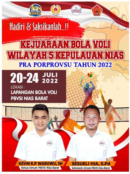 “Kejuaraan Bola Voli Wilayah V Kepulauan Nias dilaksanakan pada 20-24 Juli 2022 dilapangan bola voli PBVSI Nias Barat di Onolimbu”, jelas Sesueli Hia.