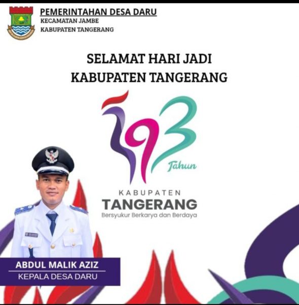 Kabupaten Tangerang – Media Fokuslensa.com – Dalam rangka memperingati Hari Jadi ke-393 Kabupaten Tangerang, Kepala Desa Daru Kecamatan Jambe, Abdul Malik Aziz, menyampaikan ucapan selamat dan harapan terbaik bagi kemajuan serta kesejahteraan masyarakat Kabupaten Tangerang.