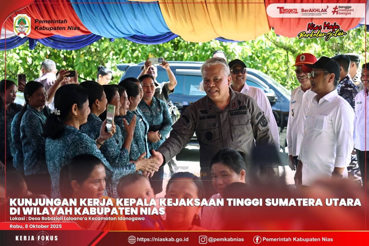 Nias – Media Fokuslensa.com – Kepala Kejaksaan Tinggi (Kajati) Sumatera Utara, Dr. Harli Siregar, S.H., M.Hum beserta rombongan melaksanakan kunjungan kerja di wilayah Kabupaten Nias dengan sejumlah agenda strategis yang berfokus pada peningkatan kesejahteraan masyarakat dan penguatan program pemerintah daerah, Rabu (8/10/25)