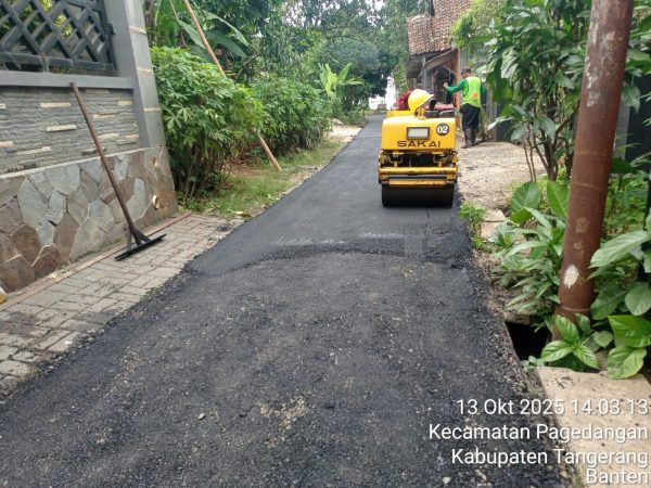 Tangerang – Media Fokuslensa.com – Proyek Hotmix di beberapa titik lokasi yang bersumber dari Anggaran Dana Desa (ADD) melalui Desa Pagedangan, Kecamatan Pagedangan, Kabupaten Tangerang diduga ditunggangi oleh kepentingan pribadi. Selasa, 14/10/2025.