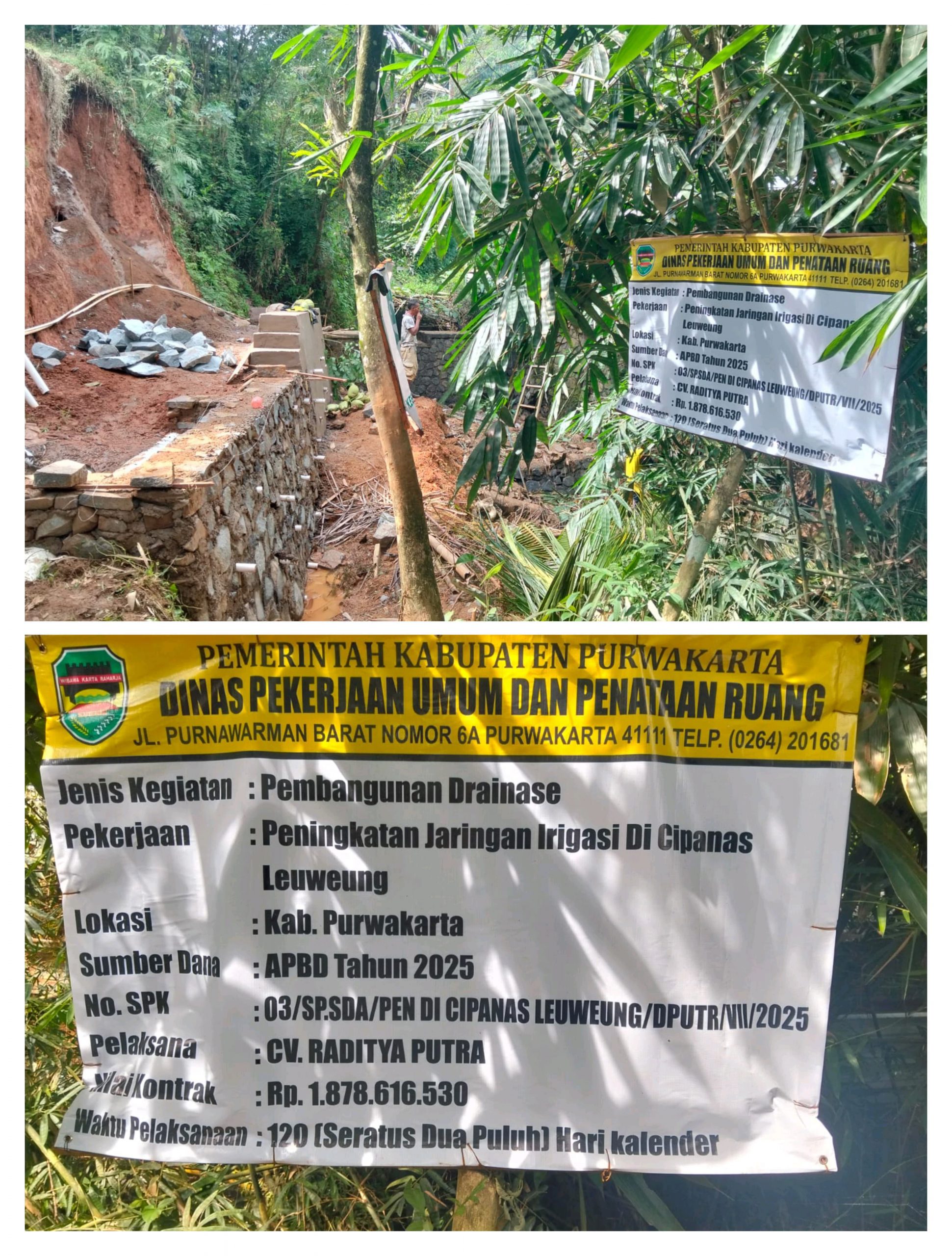 Purwakarta – Media Fokuslensa.com – Proyek pembangunan drainase dan peningkatan jaringan irigasi di Desa Mekarjaya, Kecamatan Kiarapedes, kini menjadi sorotan tajam. Pekerjaan yang dibiayai dari Anggaran Pendapatan Belanja Daerah (APBD) Provinsi Jawa Barat Tahun Anggaran 2025 sebesar Rp 1.878.616.530 itu dikerjakan oleh CV. Raditiya Putra berdasarkan kontrak No. SPK.03/SP.SDA/PEN.DI CIPANAS LEUWEUNG/DPUTR./VII/2025 dengan waktu pelaksanaan 102 hari kalender.