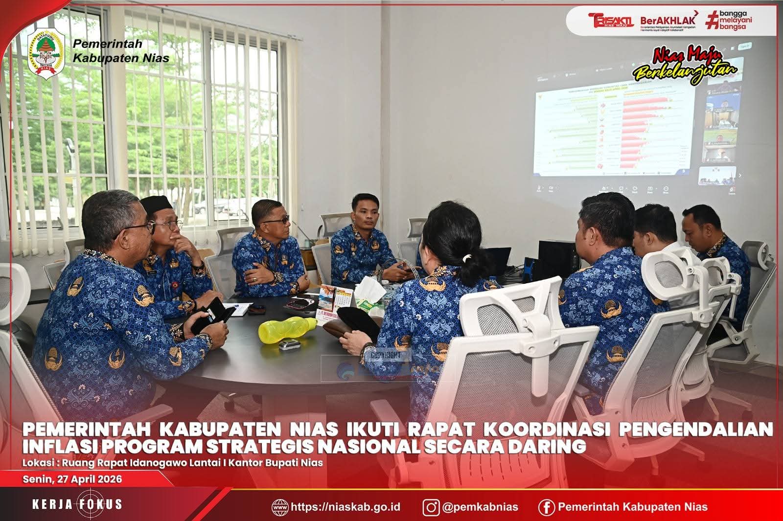 Nias – Media fokuslensa.com – Senin, 27 April 2026. Pemerintah Kabupaten Nias mengikuti Rapat Koordinasi Pengendalian Inflasi yang dirangkai dengan Evaluasi Dukungan Pemerintah Daerah dalam Program 3 Juta Rumah serta Sosialisasi Penyelenggaraan Jaminan Produk Halal.