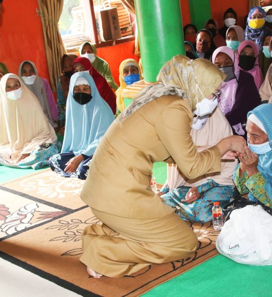 Ambu Anne, didampingi Kepala Dinsos P3A, Kepala BPBD, Camat Pasawahan, beserta Ketua Pengajian Al-Hidayah menyerahkan bantuan tersebut di Majlis Ta’lim Al-Falah Desa Pasawahan Anyar, Senin 21 Maret 2022.