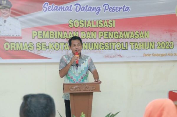 Gunungsitoli – fokuslensa.com – Pemerintah Kota Gunungsitoli melalui Badan Kesatuan Bangsa dan Politik Kota Gunungsitoli melaksanakan kegiatan Sosialisasi Pembinaan dan Pengawasan Organisasi Masyarakat (Ormas) se-Kota Gunungsitoli. Sosialisasi ini dibuka secara resmi oleh Kepala Badan Kesatuan Bangsa dan Politik Kota Gunungsitoli Alvian Temali Harefa, SE, bertempat di Kantor Badan Kesbangpol Kota Gunungsitoli, Jumat 26 Mei 2023.