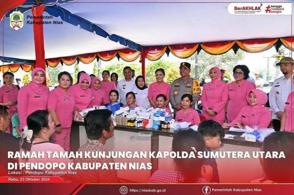 Nias – Media Fokuslensa.com – Pjs Bupati Nias, Ir. Yuliani Siregar, M.AP hadiri kegiatan Ramah-tamah di Pendopo Kabupaten Nias dan Bakti Sosial serta Bakti Kesehatan Polda Sumatera Utara di Alun-alun Kota Gunungsitoli, Rabu (23/10/2024)