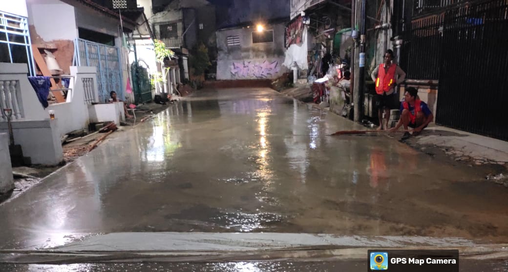 Tangerang – Media Fokuslensa.com – Betonisasi Jalan Blok E RT/11 RW/13 Binong Permai, Kelurahan Binong, Kecamatan Curug yang dilaksanakan oleh CV Bintang Karya diduga tidak sesuai spesifikasi standar maupun kualitasnya. Minggu, 02/11/2025.