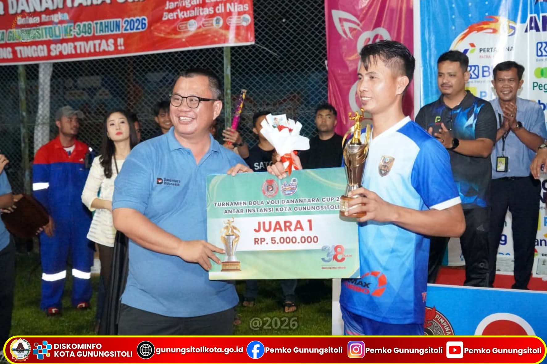 Gunungsitoli – Media fokuslensa.com – Wali Kota Gunungsitoli secara resmi menutup Turnamen Bola Voli Danantara Cup 2026 dalam rangka memeriahkan Hari Jadi ke-348 Kota Gunungsitoli yang berlangsung di Lapangan Bola Voli PT. Pertamina Patra Niaga Fuel Terminal Gunungsitoli, Jumat (24/4).