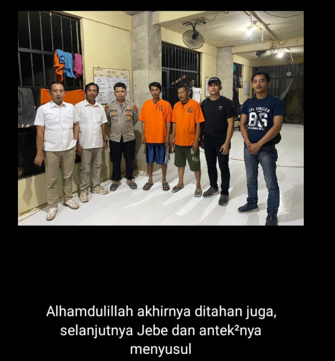 Sementara pada foto yang beredar di media sosial, dua orang diduga Iyas dan Juman itu diapit oleh seorang anggota polisi dan empat orang lainnya. Foto tersebut dinarasikan, “Alhamdulillah akhirnya ditahan juga, selanjutnya Jebe dan antek-anteknya menyusul.”