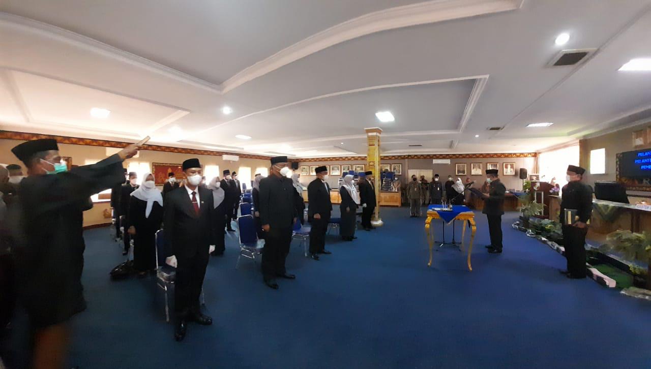 LAMPUNG UTARA – Fokuslensa.com – Sekretaris Daerah (Sekda) Kabupaten Lampung Utara (Lampura) Drs. Hi. Lekok, M.M., melantik dan mengambil sumpah 20 Pejabat Fungsional Pengawas Penyelenggaraan Urusan Pemerintah Daerah (PPUPD) dan Pejabat Pengawas di Lingkungan Pemkab setempat. Kegiatan pelantikan berlangsung di Ruang Siger Setdakab Lampura, Senin (15/03/2021).