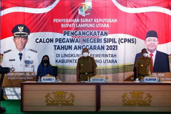 Selain itu, perlu dipahami juga bahwa saat ini saudara baru menjadi Calon Pegawai Negeri Sipil, belum menjadi Pegawai Negeri Sipil. “Selain akan dilakukan pembinaan, pendidikan dan pelatihan, maka nantinya kinerja saudara juga akan dilakukan evaluasi dan penilaian, yang akan menjadi dasar bagi Pemerintah Kabupaten Lampung Utara untuk menetapkan saudara layak diangkat menjadi Pegawai Negeri Sipil penuh 100 persen ataukah tidak,” ujar Sekda.