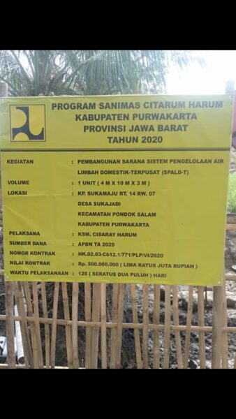 Eka prayudistira selaku TFL saat dikonfirmasi menjelaskan saya bertugas mendampingi program citarum harum 2020 untuk membangun sarana instalasi pengolaan air limbah domistik ataw IPAL terpusat,tujuan dibangunnya ini untuk mengatasi limbah domistik masyarakat termasuk cuci mandi, kakus.