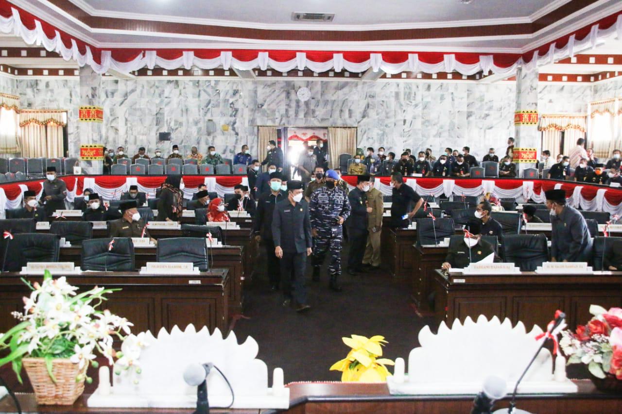 KOTABUMI – Fokuslensa.com – Asisten I Pemerintahan dan Kesra Pemkab Lampura Mankodri, S.H., M.M., mewakili Bupati Lampung Utara Hi. Budi Utomo, S.E.,M.M., menghadiri Paripurna DPRD Lampura dalam rangka pembahasan laporan keterangan pertanggungjawaban (LKPJ) Bupati Lampura Tahun Anggaran 2020, Jumat (30/04/2021).