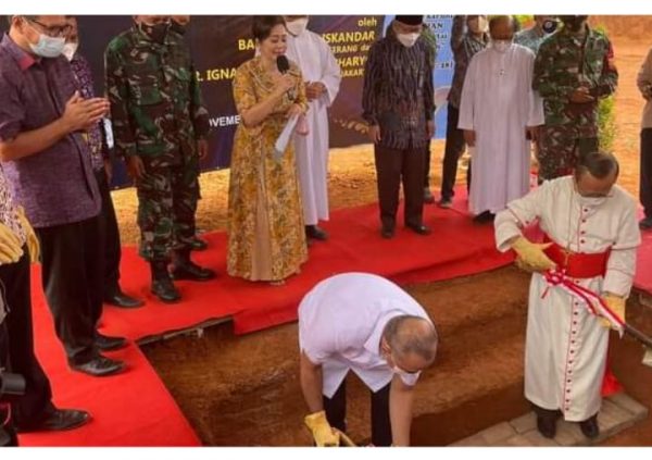 Nias – fokuslensa.com – Wakil Bupati Nias Barat Dr. Era-Era Hia,MM,M.Si, menghadiri Undangan Peletakan Batu Gereja Santa Perawan Maria Benteng Gading-Gading Serpong, Kamis (18/11/2021).