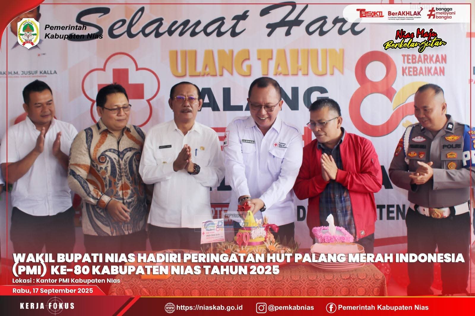 Nias – Media Fokuslensa.com – Wakil Bupati Nias Arota Lase, A.Md menghadiri peringatan Hari Ulang Tahun (HUT) Palang Merah Indonesia (PMI) Ke-80. Kegiatan yang diselenggarakan oleh PMI Kabupaten Nias bertempat di Markas PMI Desa Hiliweto Kecamatan Gido. Rabu (17/9/25)