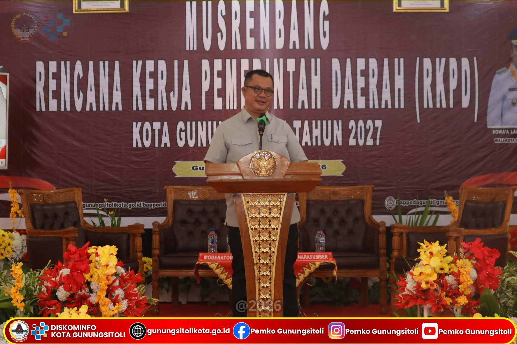 Rangkaian kegiatan Musrenbang RKPD Kota Gunungsitoli Tahun 2027 kemudian ditutup secara resmi oleh Wakil Wali Kota Gunungsitoli Martinus Lase, S.H. Penutupan ini menandai berakhirnya seluruh tahapan forum perencanaan yang diharapkan mampu menghasilkan dokumen perencanaan pembangunan yang aspiratif, sinergis, dan mampu menjawab kebutuhan masyarakat secara nyata. (DG)
