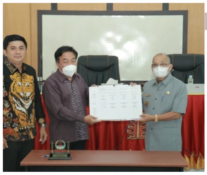Gunungsitoli – Fokuslensa.com – Setelah penyampaian pendapat akhir Fraksi-Fraksi DPRD Kota Gunungsitoli dan persetujuan Anggota DPRD secara lisan, Walikota dan Pimpinan DPRD menandatangani persetujuan bersama Rancangan Peraturan Daerah (Ranperda) APBD Kota Gunungsitoli Tahun Anggaran 2022 bertempat di Ruang Rapat Paripurna DPRD Kota Gunungsitoli, Rabu (01/12/2021)