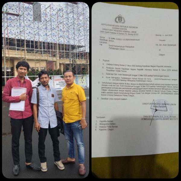 Sebelum gugatan diajukan, Andri juga mengajukan permohonan perlindungan hukum ke Direktorat Reserse Kriminal Umum Polda Banten. Berdasarkan Surat Nomor: B/1849/VI/RES.1.8/2025/Ditreskrimum tertanggal 6 Juni 2025, permohonan tersebut telah dilimpahkan ke Polres Cilegon untuk ditindaklanjuti.