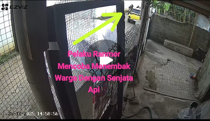 “Tadi malingnya ber 2 yang satu dia di motor, terus yang satu sempet mau maling, terus ketauan sama tetangga langsung di teriakin, pas mau di kejar dia ngeluarin beceng (senjata api-red),” kata salah satu warga setempat, pada Kamis (25/12/2025).