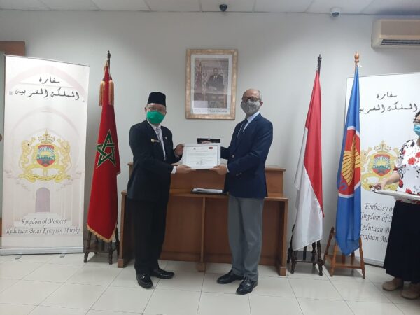 JAKARTA | Fokuslensa.com – Duta Besar Kerajaan Maroko untuk Indonesia, Mr. Ouadia Benabdellah, berkenan menganugerahkan sertifikat penghargaan kepada wartamerdeka.info dan ratusan media nassa lainnya atas partisipasi dan kerjasama dalam pemberitaan yang dilakukan selama ini, khususnya memberitakan tentang pengakuan Amerika Serikat terhadap kedaulatan Kerajaan Maroko atas wilayah Sahara Barat.
