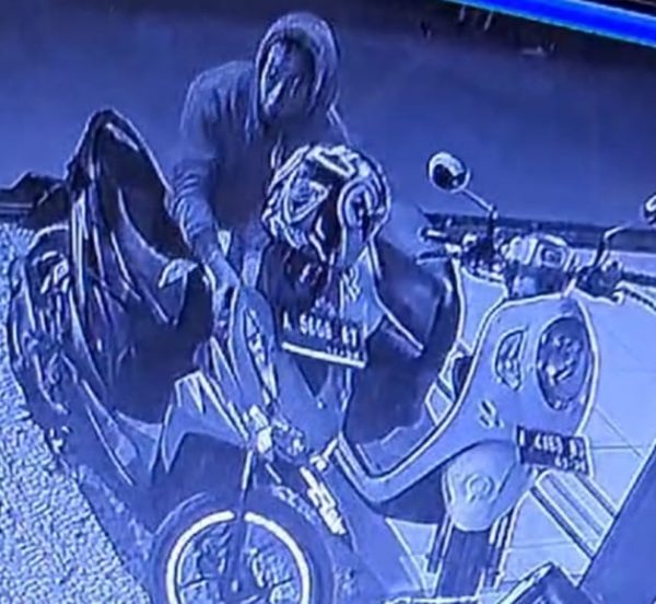 “Terlihat jelas ada dua orang yang diduga pelaku sedang mengawasi area parkiran Puskesmas, satu orang pelaku standbye di atas motor yang terparkir di sebrang Puskesmas, dan satu orang pelakunya lagi dengan menggunakan sweater hitam dan menggunakan langsung mengambil motor hanya dengan hitungan detik saja,” ujarnya.