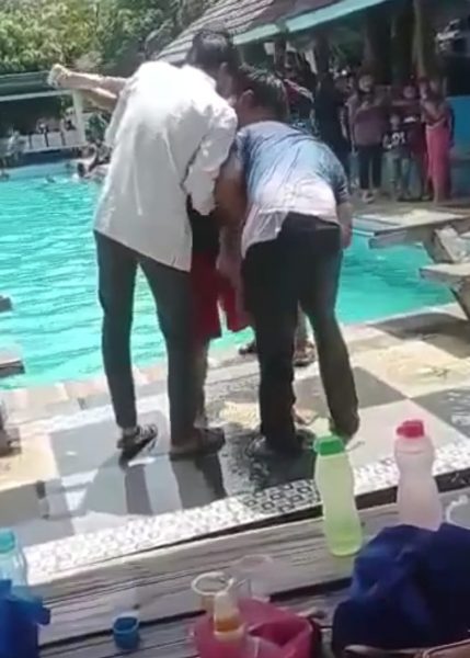 sejumlah orang mencoba memberikan pertolongan juga untuk mengeluarkan air dalam tubuh korban tersebut.
