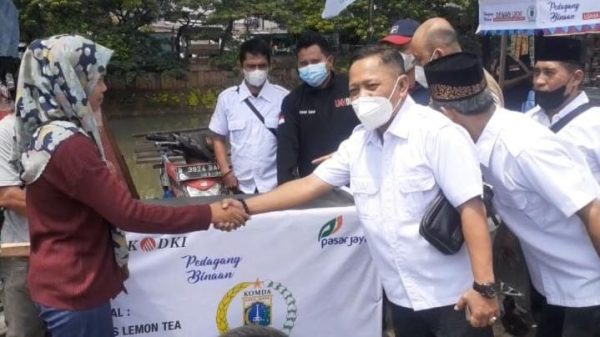 Jakarta – Fokuslensa.com – Dewan Usaha Kecil Menengah (UKM) Jakarta Barat (Jakbar) menyerahkan bantuan gerobak kepada pedagang Pasar Kemiri, Kembangan Utara, Kembangan, Jakarta Barat, Minggu (23/1/2022). Ini merupakan salah satu program kerja Dewan Kota Jakarta Barat.