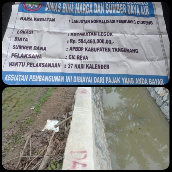 Seperti halnya proyek lanjutan normalisasi pembuangan Ciodeng, Desa Palasari, Kecamatan Legok, Kabupaten Tangerang yang dilaksanakan oleh CV. Reva dengan Sumber anggaran dari APBD-P 2023 sebesar Rp. 594.460.000,00,- melalui Dinas Bina Marga dan Sumber Daya Air (DBMSDA) yang diduga dikerjakan lewat dari kontrak.