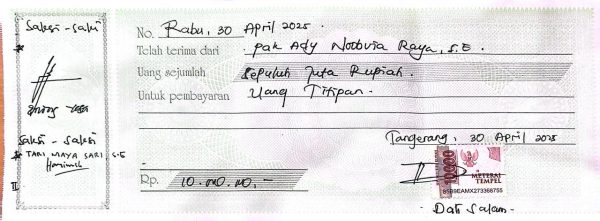 Ady, pihak yang merasa dirugikan, mengungkapkan bahwa uang tersebut awalnya dititipkan melalui perantara berinisial J untuk rencana kerja sama dengan pabrik di wilayah desa. “Saya titipkan Rp10 juta kepada Jaro Desa Blimbing, dengan kwitansi ditandatangani Sekdes dan disaksikan dua staf saya,” ujar Ady, Jumat (10/10/2025).