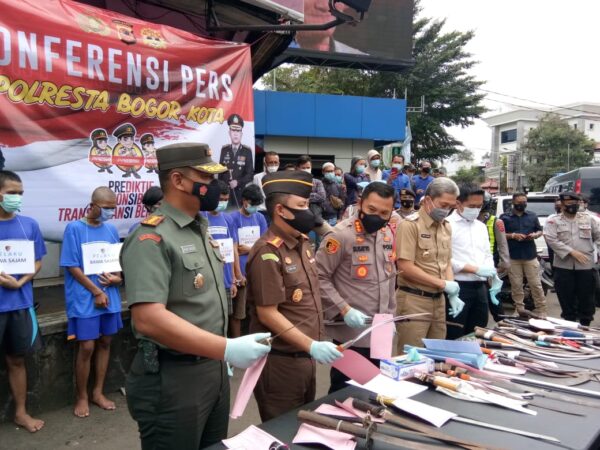 Bogor | Fokuslensa.com – Polresta Bogor Kota Senin 8 Maret 2021 menggelar konferensi pers terkait kejahatan jalanan dan kekerasan dengan barang bukti sebanyak 38 senjata tajam yang berhasil diungkap oleh Tim Kujang Polresta Kota Bogor.