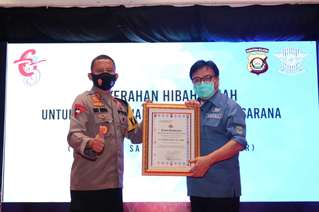 Dalam kesempatan ini juga Gubernur yang diwakili oleh Sekda Propinsi Sumsel H. Nasrun Umar melakukan penyerahan Surat Hibah Tanah kepada Kapolda Sumsel, dimana Tanah seluas