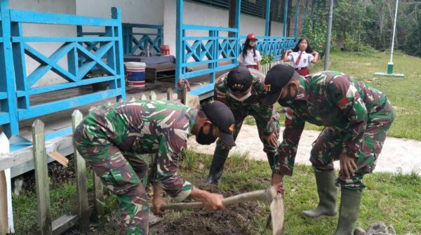 Kapuas Hulu, Kalimantan Barat – Fokuslensa.com – Bertempat di Dusun Klawik, Desa Mensiau, Kecamatan Batang Lupar, Kapuas Hulu. Satgas Pamtas Yonif 407/Padma Kusuma melaksanakan kerja bhakti pengecetan gedung SDN 11 Klawik, sebagai bentuk kepedulian Satgas terhadap dunia pendidikan.