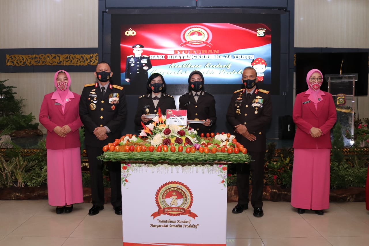 Upacara Hari Bhayangkara Ke-74 dengan mengangkat tema “Kamtibmas Kondusif Masyarakat Semakin Produktif” berjalan khidmat dan lancar. Setelah pelaksanaan upacara Kapolda Sumsel memberikan penghargaan kepada Unsur Forkopimda Sumsel atas bantuan, kerja sama dan sinergitas dalam memelihara kamtibmas di wilayah hukum polda sumsel. Dilanjutkan dengan pemberian penghargaan dari Gubernur Sumsel kepada Polda Sumsel atas prestasi pengungkapan Cyber Crime kasus peretasan website PPID Provinsi Sumsel kemudian penandatangan dan pemberian Hibah Tanah dari Pemerintah Propinsi Sumsel kepada Polda Sumsel seluas 20.000 m2.